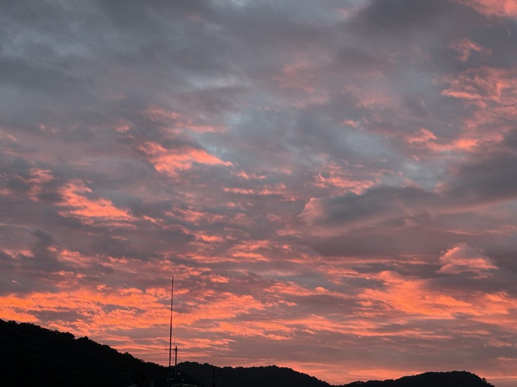 朝5時30分頃、散歩中に撮った朝焼けです!すっかり秋の空ですね。